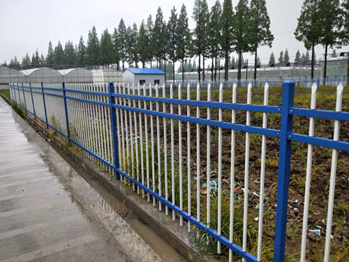 現(xiàn)貨藍白色三橫桿鋅鋼管護欄網(wǎng)價格冒雨安裝